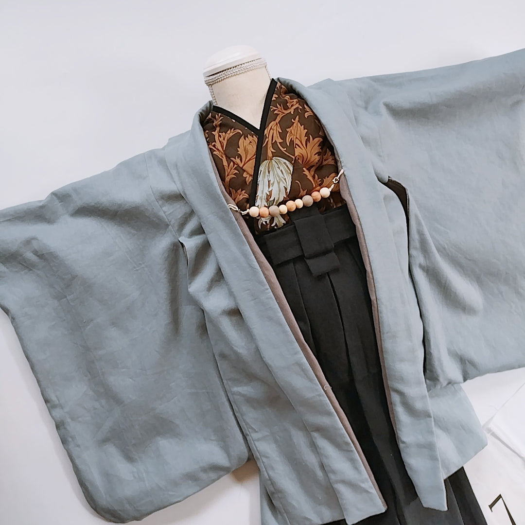 ・リバーシブル羽織( くすみブルー× グレー)